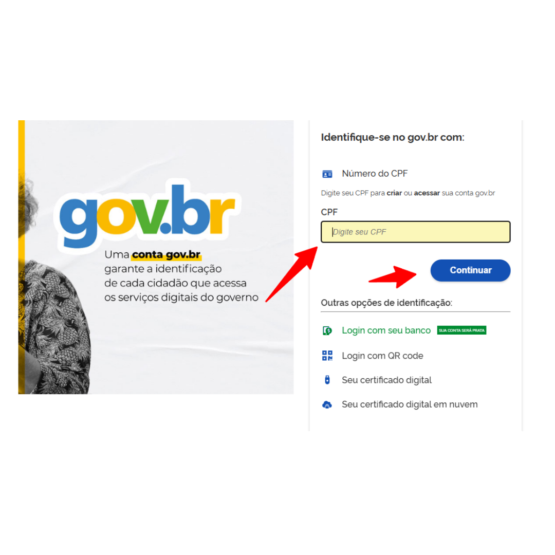 Você será redirecionado para o portal do gov.br, onde terá de acessar sua conta de cidadão ou realizar o cadastro para então prosseguir.